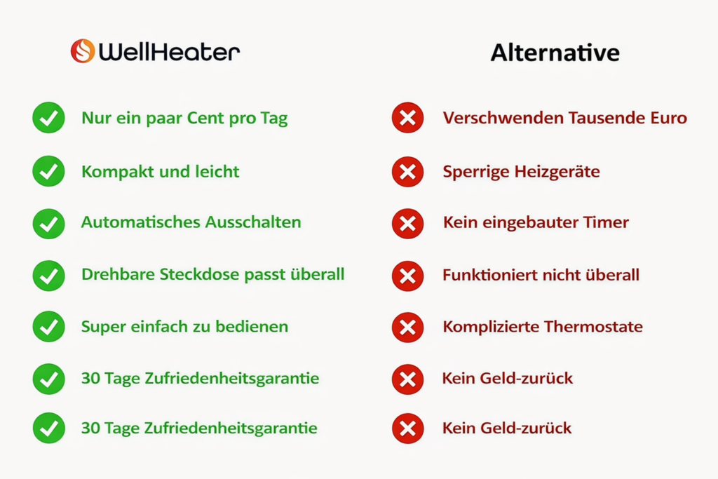 Das macht WellHeater zur besten und erschwinglichsten Heizlösung für Ihr Zuhause in diesem Winter.